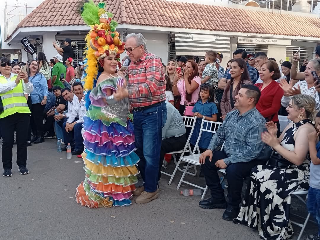 Al ritmo de “Rumba y Tradición”, el Gobernador Rubén Rocha Moya, acompañado del edil municipal Alberto “El Capy” Rivera y de Anita Gutiérrez Palazuelos, Presidenta del DIF Municipal, presenció el tradicional desfile de las fiestas del Carnaval en Angostura.