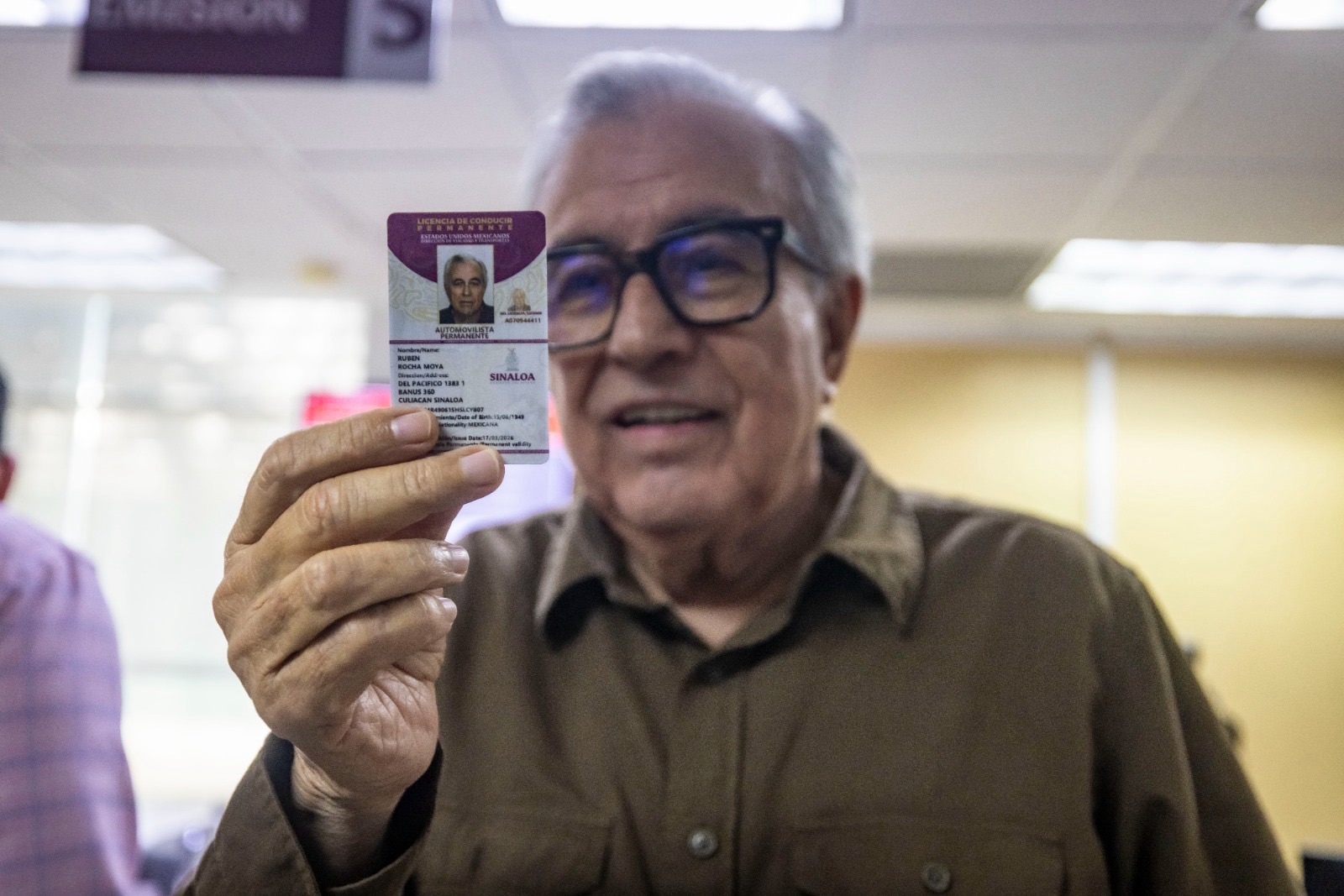 Invitando a las y los sinaloenses a tramitar la nueva licencia permanente, el gobernador Rubén Rocha Moya, acudió personalmente a las oficinas de Vialidad y Transportes, en la Unidad de Servicios Estatales, para ser uno de los primeros ciudadanos en tramitar su licencia.