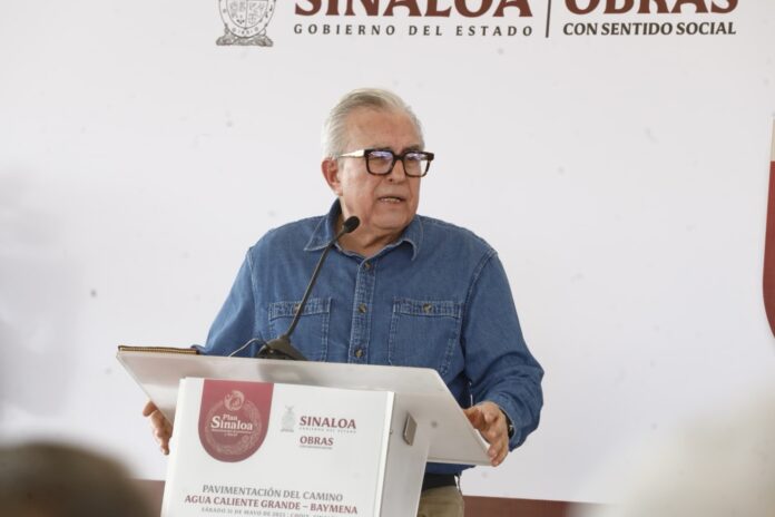 Al poner en marcha los trabajos de construcción de la carretera de Aguacaliente Grande a Baymena, en el municipio de Choix, el gobernador Rubén Rocha Moya destacó que su propósito es distribuir el beneficio social en todo el estado, especialmente llevar el desarrollo a comunidades indígenas como Baymena, donde sus pobladores tienen el mismo derecho de vivir en condiciones dignas con una mejor calidad de vida.
