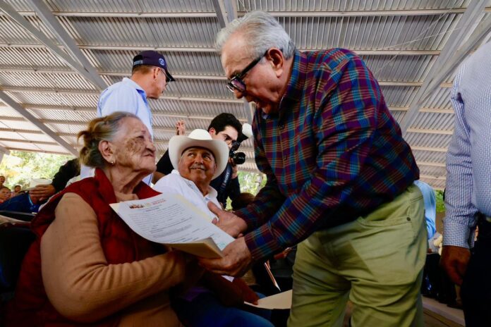 2 mil 122 títulos de propiedad y 957 certificados parcelarios, por parte del RAN; así como 108 escrituras públicas por parte de la CVIVE; beneficiando a 3 mil 187 familias de comunidades como Sinaloa de Leyva, Agua Escondida, Rancho Nuevo, El Palmar de los Sepúlveda, El Caimán, Mazocari, Matapan, La Higuerita, Santiago de Ocoroni, Cubiri de la Capilla, El carrizo de San Pablo, San Bruno, El Zapote, entre otras, lo que refleja el compromiso humanitario del gobernador Rubén Rocha Moya.